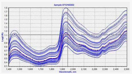 近紅外光譜儀工作原理是,如果樣品的組成相同,則其光譜也相同,反之亦然。如果我們建立了光譜與待測參數之間的對應關系(稱為分析模型),那么只要測得樣品的光譜,通過光譜和上述對應關系,就能很快得到所需要的參數數據。